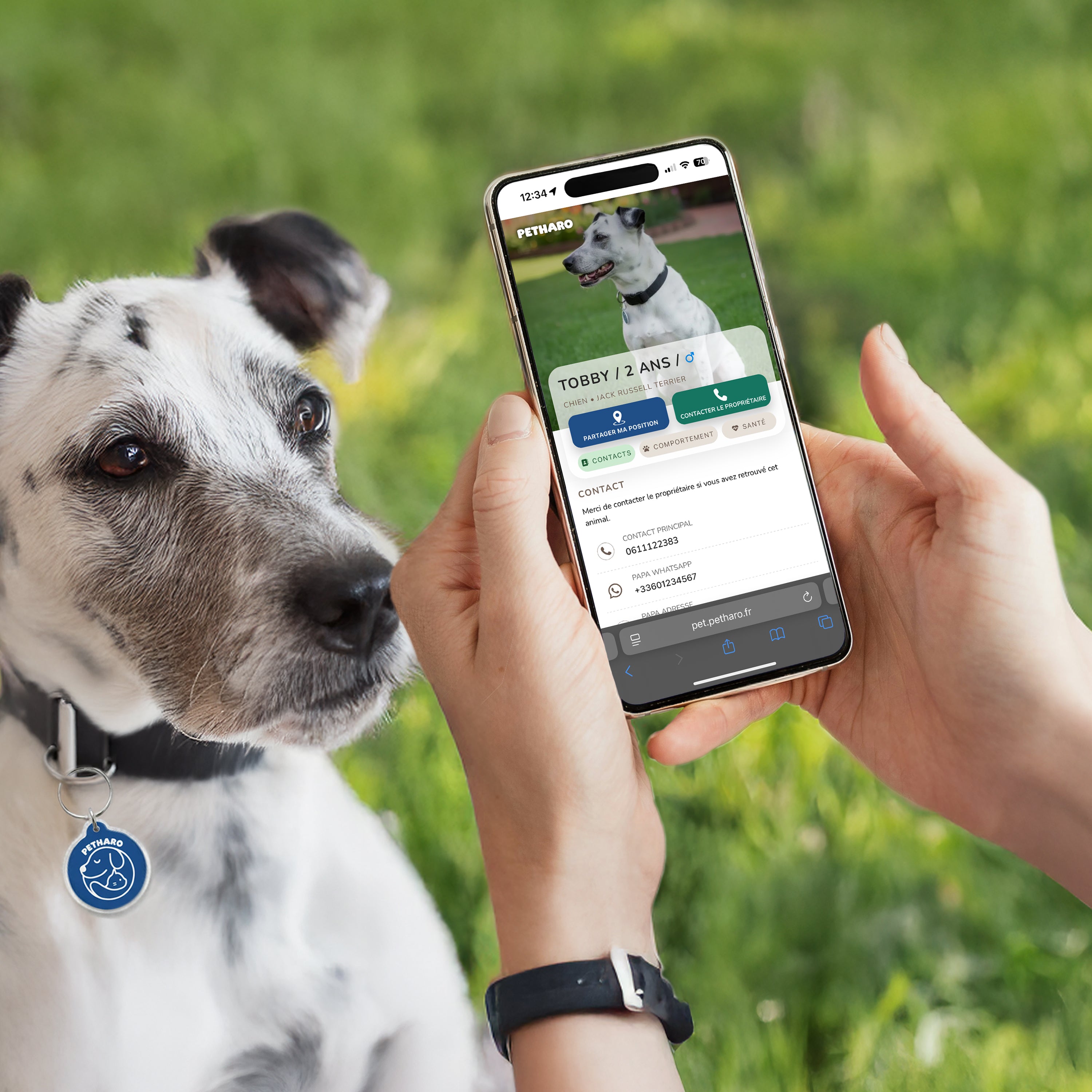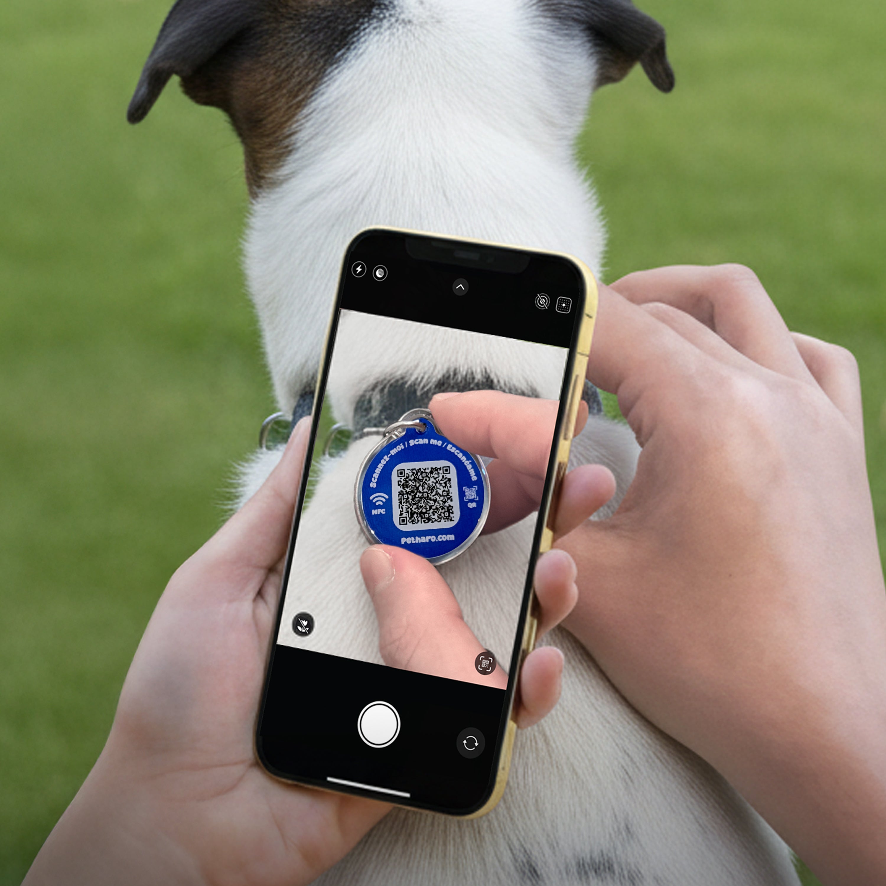 Que ce soit pour activer la médaille ou pour la personne qui trouve votre animal, tout se fait via l'appareil photo du smartphone ou le lecteur NFC (sans contact) intégré à tous les téléphones modernes. C'est universel et instantané.